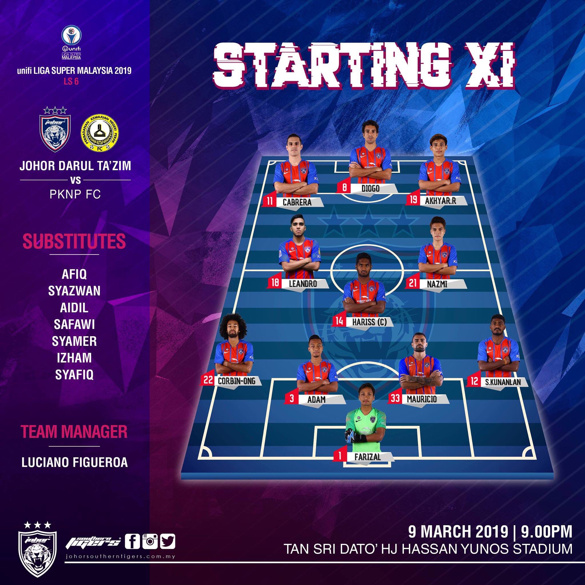 Johorsoutherntigers Ar Twitter Unifi Liga Super 2019 9 March 2019 Starting Lineup Johor Darul Ta Zim Vs Pknp Fc Full List At Https T Co Hvva3qbyot Https T Co 3vuydt3xfm Twitter